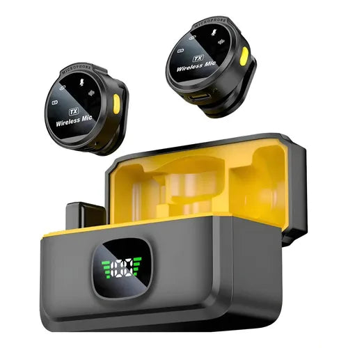 Micrófono Lavalier inalámbrico para iPhone y Android con estuche de carga, mini micrófono de solapa USB C.